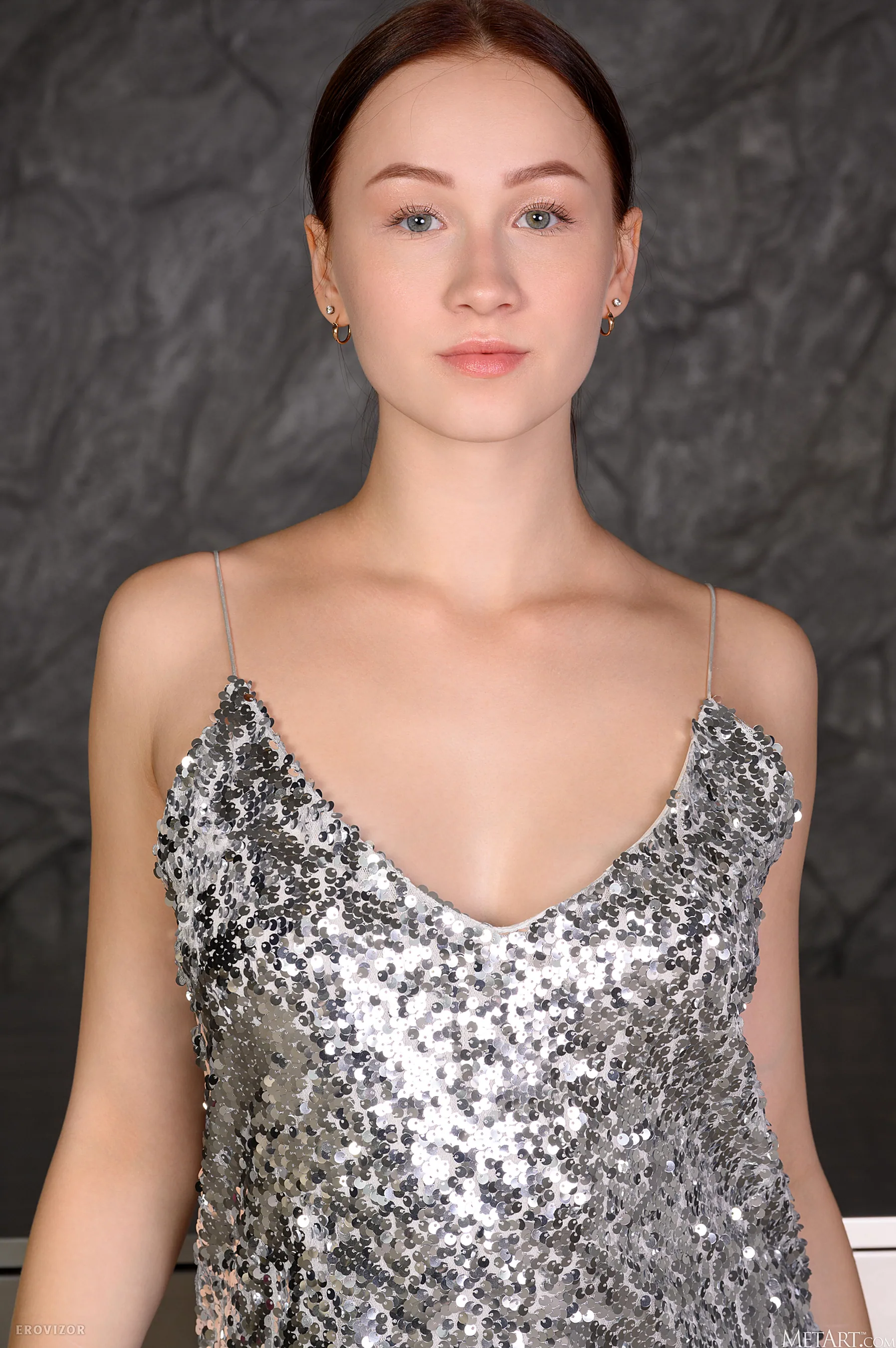 Сверкающее платье с пайетками идеально облегает соблазнительную фигуру Scarlet Telles, пока она медленно раздевается прямо на современной кухне.