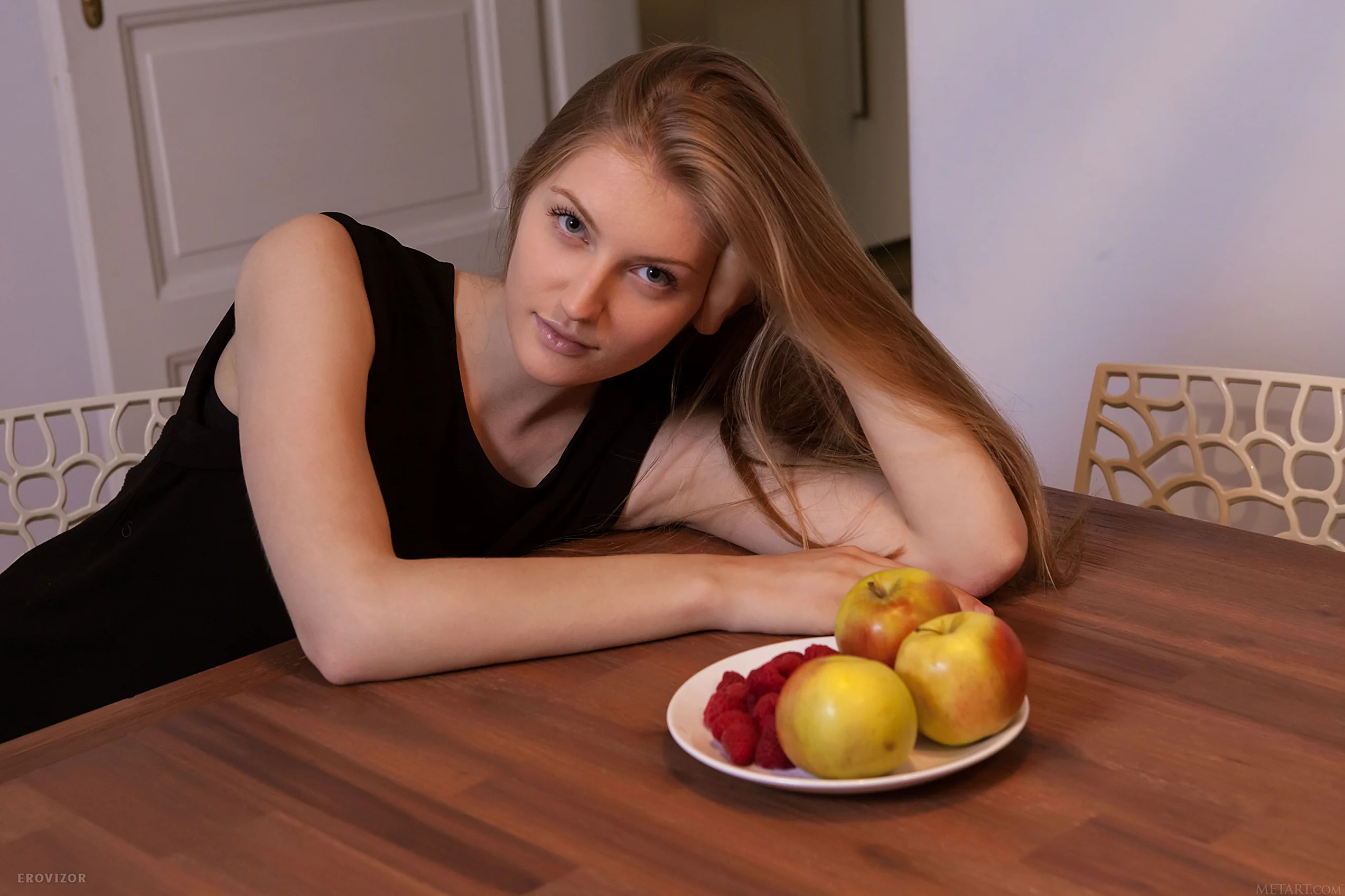 Она словно обнажённая натурщица для художника, но в этот раз всё намного откровенней. Стройная девушка Bretona не спеша раздевается, сидя на стуле, а затем грациозно взбирается на стол. Три спелых яблока на блюде нисколько не отвлекают от её идеального тела. Строгий взгляд, никаких улыбок — только серьезная соло-эротика. Она уверенно раздвигает ножки, демонстрируя гладко бритую киску в откровенных позах. Чувственное эротическое позирование в полной тишине страсти.