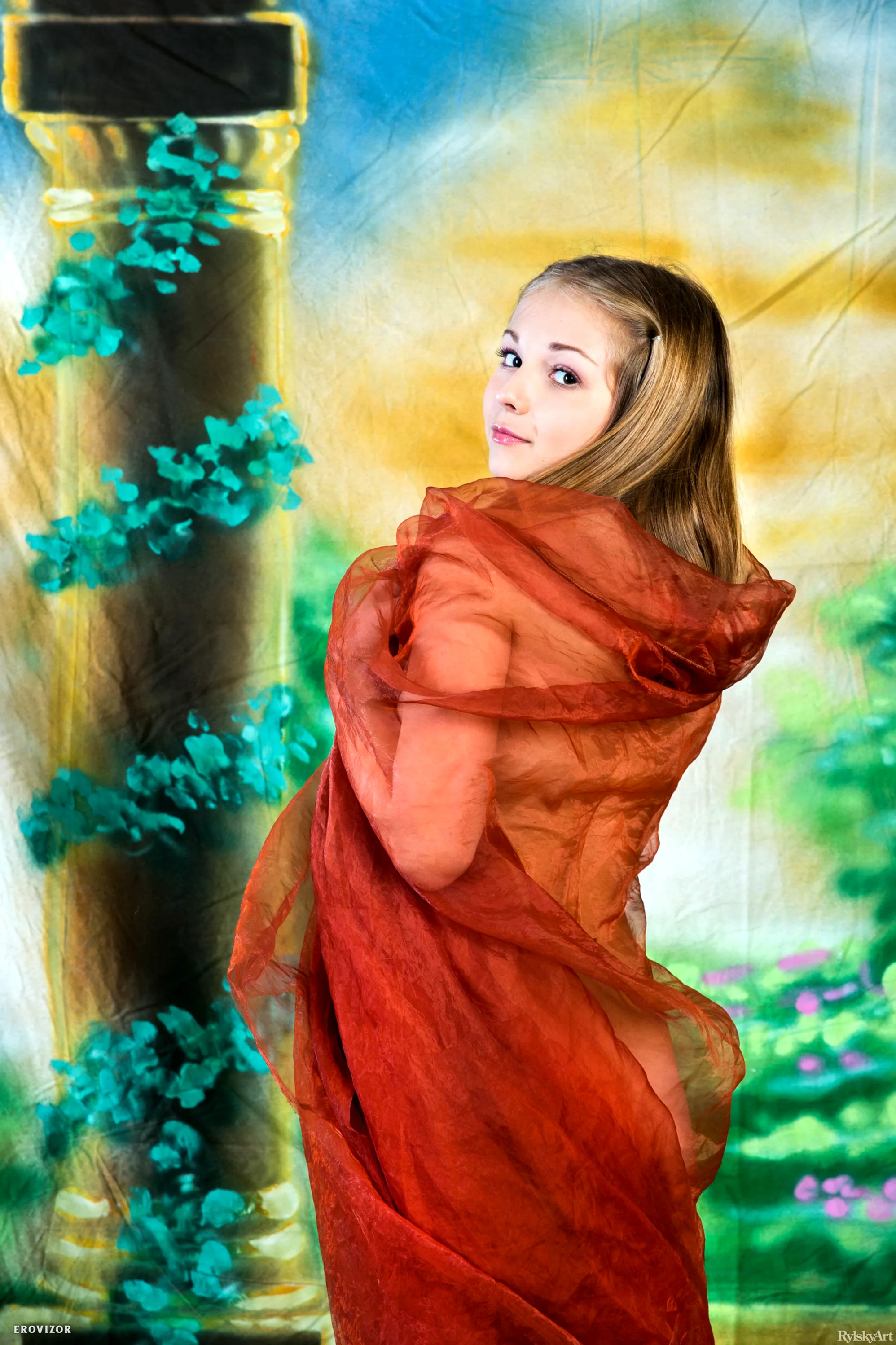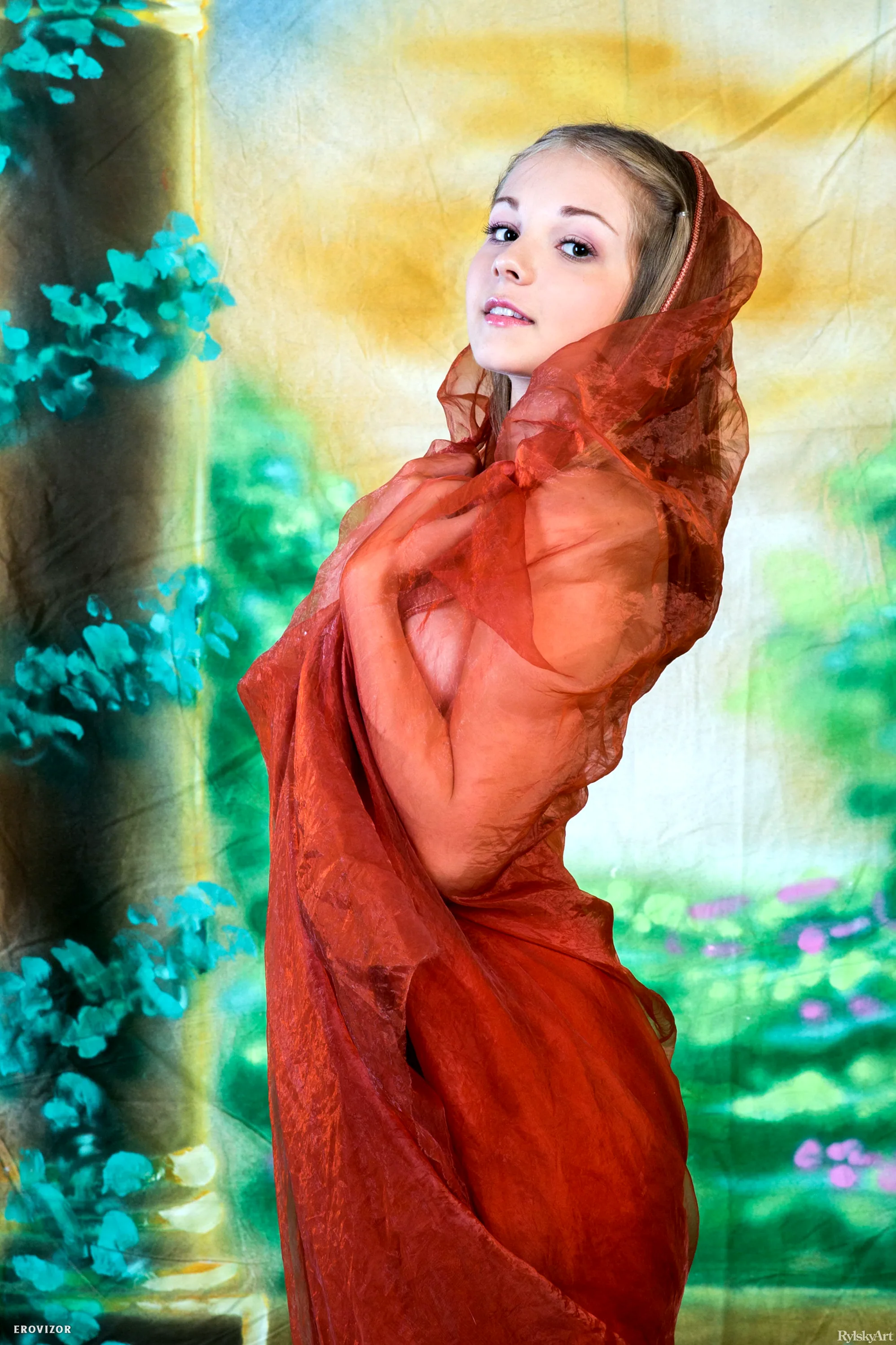 Грациозная Jeff Milton предстаёт полностью обнажённой, лишь лёгкая прозрачная вуаль небрежно касается её кожи, создавая тонкую игру света и тени. На фоне обоев с классическими античными колоннами её стройное тело выглядит особенно утончённо и величественно — словно богиня, сошедшая с фресок Помпей или статуй Древней Эллады. Белоснежная кожа модели контрастирует с тёплыми тонами интерьера, подчёркивая изящные линии бёдер, тонкую талию и нежные изгибы груди. Вуаль, почти невесомая, то прикрывает, то открывает самые интимные места, оставляя пространство для фантазии и усиливая ощущение недоступного соблазна. Длинные волосы рассыпаются по плечам, а взгляд — прямой, уверенный, чуть насмешливый — будто она знает, что именно сейчас стала центром притяжения для каждого, кто смотрит на эти кадры. Античные колонны на обоях — не случайный выбор: они отсылают к эпохе, когда обнажённое тело считалось высшим проявлением красоты и гармонии. Jeff Milton в этой съёмке воплощает именно ту самую классическую красоту, где нагота не вульгарна, а возвышенна и почти скульптурная. Каждая обнаженная поза девушки выверена, каждый поворот головы продуман — это необычное ню, как современная интерпретация вечной темы женской красоты, где древнегреческий идеал встречается с сегодняшним днём. Серия фотографий, где Jeff Milton обнажена на фоне колонн с вуалью, уже стала одной из самых популярных в портфолио модели. Лёгкость ткани, обнимающей тело, и монументальность античного декора создают ощущение, что ты подглядываешь за тайным ритуалом в заброшенном римском храме — где-то между реальностью и мифом.