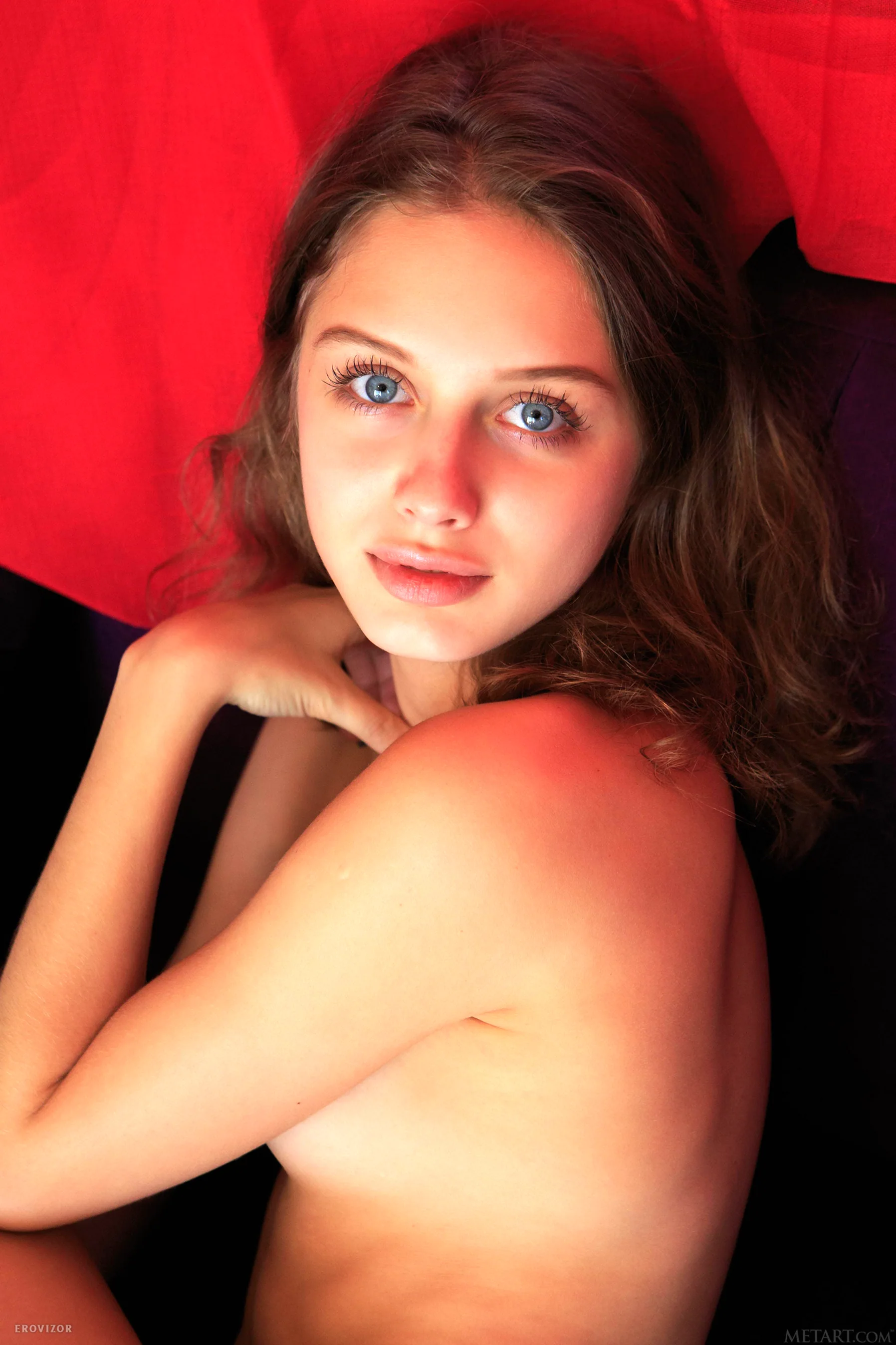 Красивая обнажённая девушка Кларисса с бездонными голубыми глазами завораживает своей природной грацией и утончённой красотой. Её пронзительный взгляд, полный глубины и загадочности, манит и удерживает внимание, подчёркивая идеальные черты лица. Стройное тело с небольшой упругой грудью и гладко выбритой писькой выглядит невероятно соблазнительно в интимных позах на мягком диване. Красные занавески на фоне добавляют страсти и тепла атмосфере комнаты, создавая контраст с нежной кожей модели. Этот эротический фотосет в стиле нежного ню соло-эротики раскрывает всю чувственность обнажённой красавицы, где обстановка и декорации подчёркивают гармонию форм и естественную привлекательность. Голубые глаза Clarice, словно океан, гипнотизируют, а её лицо ярко выделяется на фоне изящной фигуры, делая эротические снимки по-настоящему запоминающимися. Этот эротический сет высококачественных фото обнажённой Клариссы — идеальный выбор для любителей художественной эротики и ню-арта.