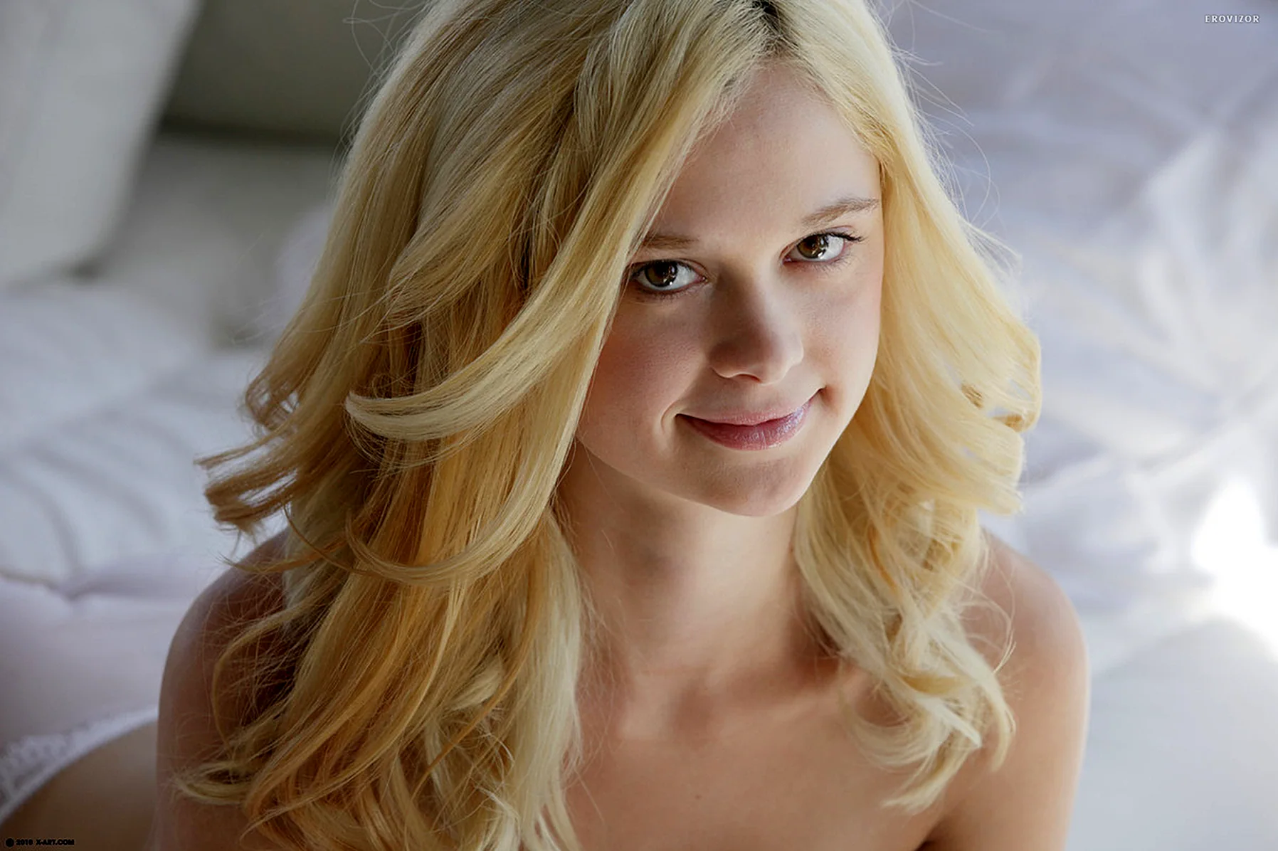 Классика эротики красивой девушки с милым лицом и стройным телом, которая снимает трусики в спальне на белоснежной постели, где мягко и уютно не только спать.
