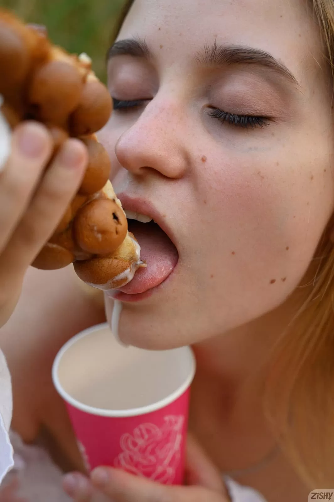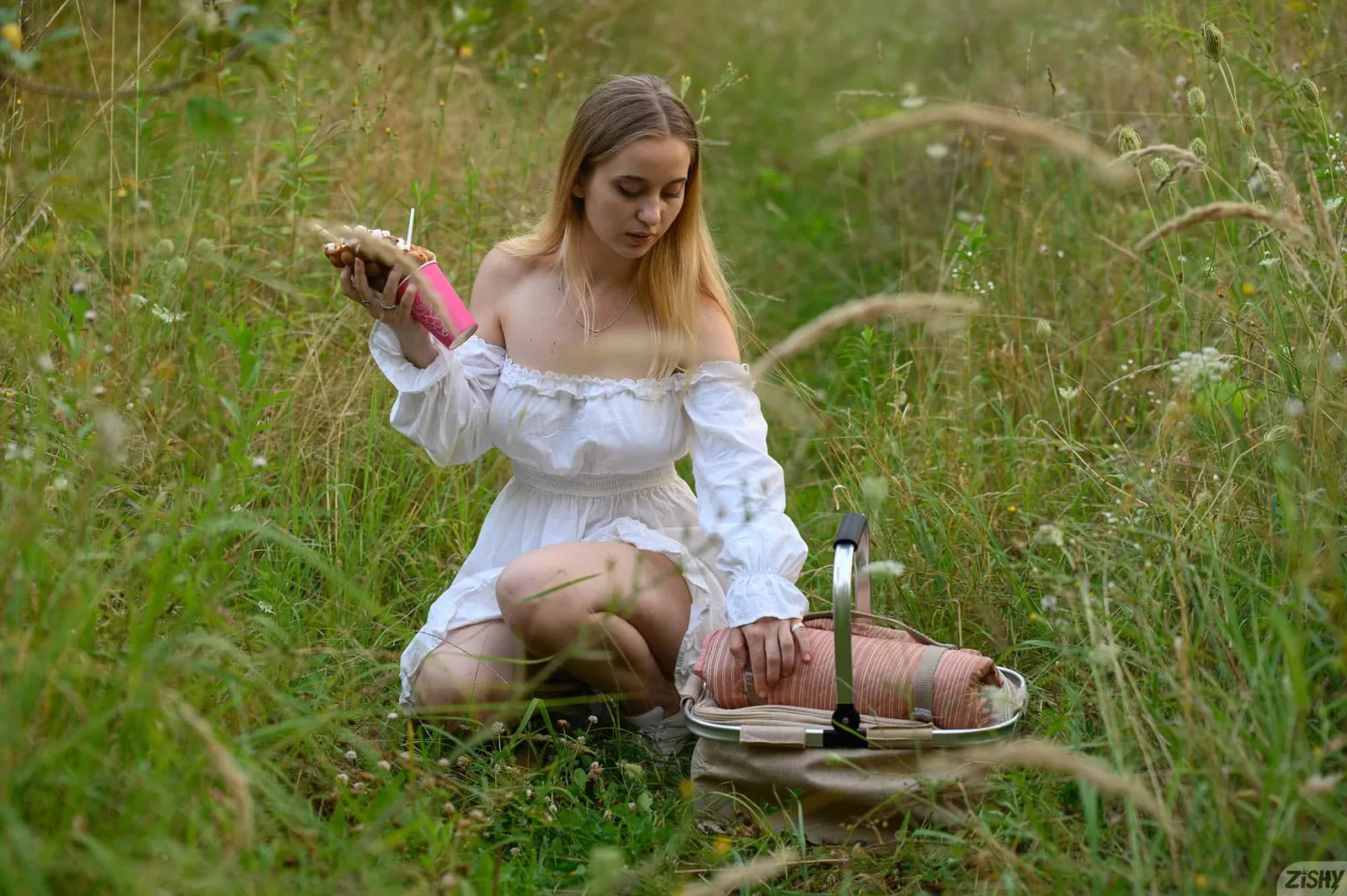 Сексуальная девушка однажды летом выбралась на одиночный пикник прихватив с собой вкусняшки в виде разных сладостей. На природе после перекуса девушка сняла трусики и перевела в нужное русло дальнейшее продолжение вечера…