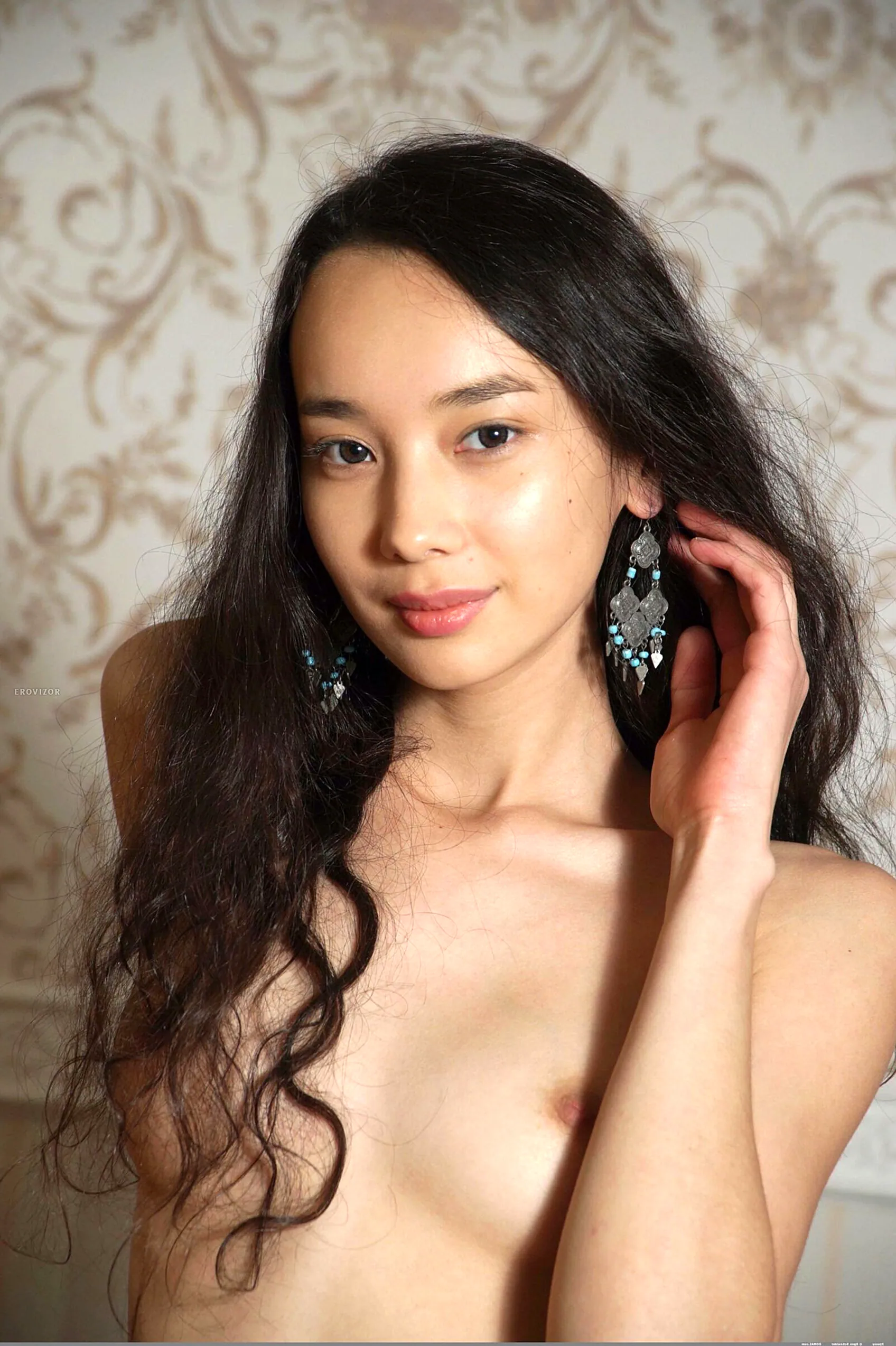Стройная брюнетка Djessy с изысканными азиатскими чертами лица, напоминающими экзотическую красоту смешанных этносов, грациозно располагается на …